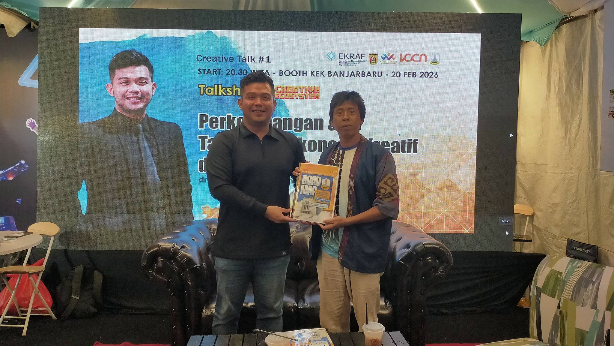 BANJARBARUEMAS.COM – Riuh pengunjung Ramadan Fair di Lapangan Murjani, Jumat (20/2/2026) malam, menjadi saksi digelarnya Special Talk Show Komite Ekonomi Kreatif (KEK) Kota Banjarbaru bertema “Perkembangan dan Tantangan Ekonomi Kreatif di Banjarbaru.”. Bertempat di Stand KEK Banjarbaru dalam rangkaian Festival Wadai di Lapangan Dr. Murdjani, diskusi ini menjadi momentum konsolidasi ekosistem kreatif kota.
