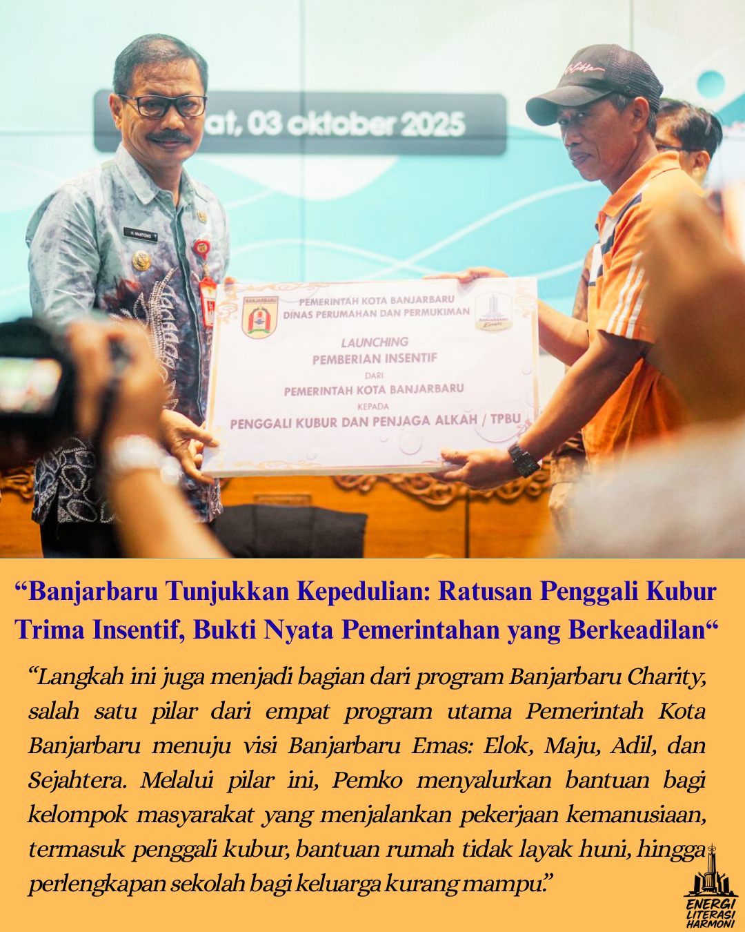 Langkah ini juga menjadi bagian dari program Banjarbaru Charity, salah satu pilar dari empat program utama Pemerintah Kota Banjarbaru menuju visi Banjarbaru Emas: Elok, Maju, Adil, dan Sejahtera. Melalui pilar ini, Pemko menyalurkan bantuan bagi kelompok masyarakat yang menjalankan pekerjaan kemanusiaan, termasuk penggali kubur, bantuan rumah tidak layak huni, hingga perlengkapan sekolah bagi keluarga kurang mampu.