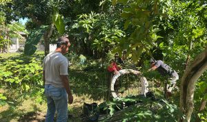 Foto : Dr. Abdul Karim, Ketua RT 02/RW IV Kelurahan Mentaos, memantau sekaligus ikut melakukan pemasangan sumur biopori di Lingkungan I, Jumat (10/4/2026), sebagai bagian dari upaya pengurangan sampah organik dan penguatan program urban farming warga.(BE)