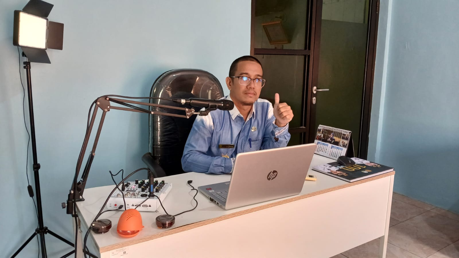 Foto : Lurah Mentaos, Ciptadi, menjadi penyiar pertama Radio Streaming KIM Tangguh Mentaos saat siaran perdana, Kamis (2/4/2026), menyampaikan informasi lokal termasuk gerakan pengelolaan sampah dari rumah kepada warga Banjarbaru.(BE)
