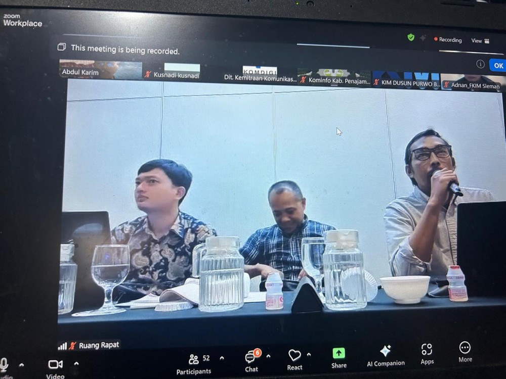 Foto : Ketua KIM Tangguh Mentaos, Dr. Abdul Karim, mengikuti pertemuan daring yang dipimpin Komdigi RI pada 22 April 2026.(BE) BANJARBARUEMAS.COM — Ruang virtual yang mempertemukan ratusan pegiat informasi dari seluruh Indonesia itu terasa berbeda. Dalam pertemuan daring pada 22 April 2026 yang dipimpin Kementerian Komunikasi dan Digital (Komdigi) Republik Indonesia, tidak sekadar koordinasi yang mengemuka, melainkan juga arah baru dalam pengelolaan informasi berbasis komunitas.