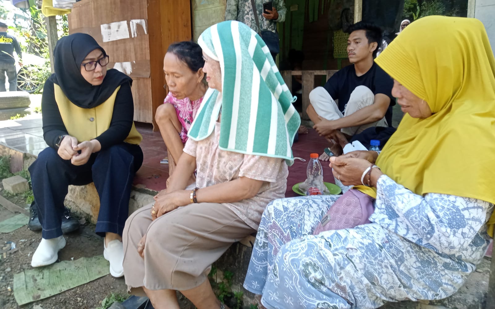 Wali Kota Banjarbaru, Hj Erna Lisa Halaby tampak berbincang dengan pemilik rumah yang terbakar disela-sela menyerahkan bantuan. (Foto : banjarbaruemas.cm)