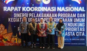 BANJARBARUEMAS.COM – Wali Kota Banjarbaru Hj. Erna Lisa Halaby menghadiri Rapat Koordinasi Nasional (Rakornas) Sinergi Pelaksanaan Program dan Kegiatan Urusan Pemerintahan Umum di Daerah yang digelar di Hotel Pullman Jakarta Central Park, Jakarta Barat, Kamis (15/1/2026). Rakornas ini diselenggarakan untuk memperkuat sinergi pemerintah pusat dan daerah dalam mendukung pelaksanaan Program Prioritas Presiden Republik Indonesia serta Asta Cita Tahun 2026.